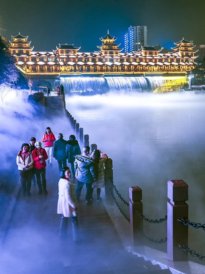 湖北恩施市清江流域上演了一場(chǎng)美輪美奐的視聽(tīng)盛宴,