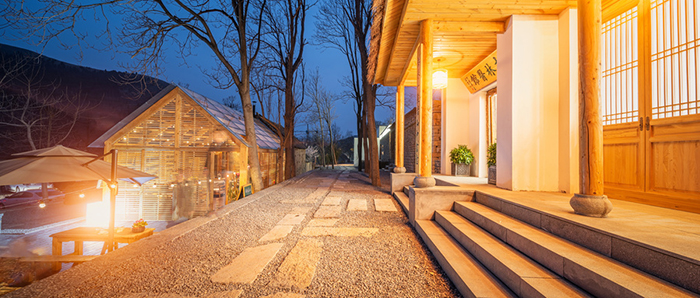 屋頂+屋身同時照明的解決方案,可以根據中式建筑的結構、明暗關系來決定燈光的照射角度和方向,突出開間的柱身韻律和檐下斗拱的層次,用光線大面積渲染屋身,勾勒局部有曲翹的屋頂,也可以用投光燈在特定的位置、角度勾勒中式建筑的輪廓,對古建筑屋脊或其他細部裝飾進行局部重點照明,用以強調中式建筑的古典美、建筑的神韻,同時進一步增加中式建筑在夜間的文化韻味和欣賞價值、商業價值。