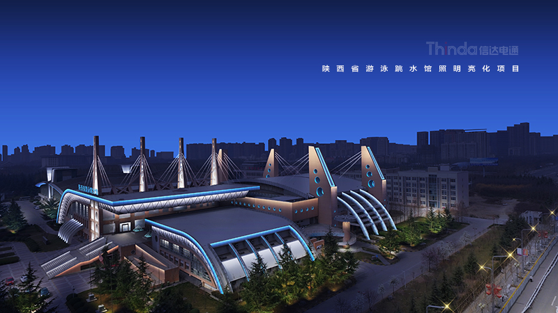 陜西省游泳跳水館是信達在西安高新區(qū)規(guī)劃項目中的一環(huán),游泳館外觀狀似揚帆遠洋的旗艦,其建筑結構、配套設施等都屬國內(nèi)先進。信達依據(jù)建筑本身特性對建筑的輪廓和頂部進行重點照明,突出建筑結構。燈光采用冷暖色調(diào)結合的方式,依照西安高新區(qū)整體的照明規(guī)劃,加強與周邊建筑的銜接與互動。
