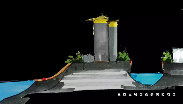 2016年,三亞開展“雙修”工作,城市夜景照明升級改造被列入了“雙修”工作的內容。為打造符合三亞城市建設定位和地域文化特征的夜景,信達電通對三亞整體夜景重新規劃設計。通過特色夜景打造,提高城市吸引力,展現三亞“國際、熱帶、濱海、旅游”核心氣質。