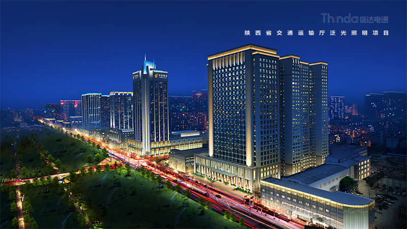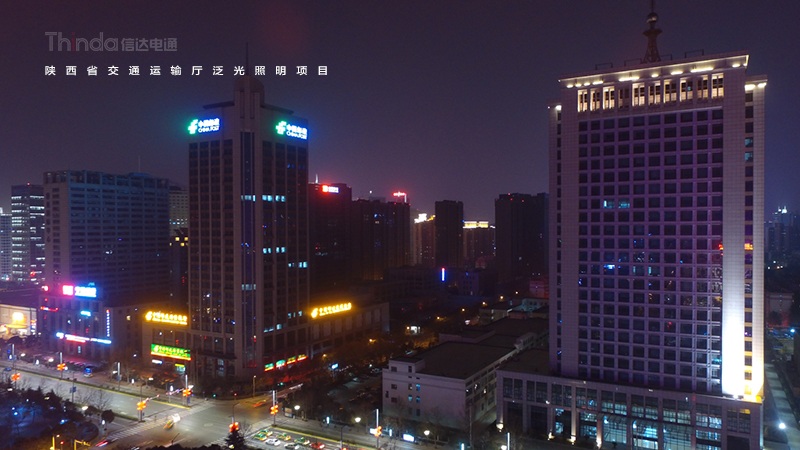 陜西省交通廳是2016年西安高新區(qū)整體區(qū)域照明設(shè)計(jì)規(guī)劃的一份子,電通根據(jù)建筑特點(diǎn)以及所處的地理位置結(jié)合周邊的建筑和景觀,對陜西省交通運(yùn)輸廳進(jìn)行照明設(shè)計(jì)改造工作。設(shè)計(jì)后的夜景照明效果強(qiáng)調(diào)天際線效果,同時增加建筑立面層次感。暗區(qū)與明區(qū)想映襯,凸顯建筑主體。